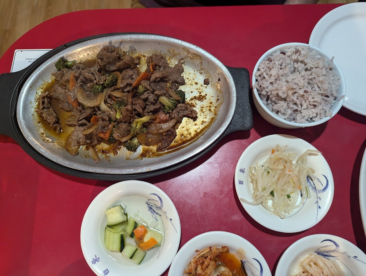 The menu leans confidently into Korean comfort food, offering a mix of classics and house favorites that show real care in preparation. Bibimbap arrives in a hot stone bowl, still sizzling, with vegetables arranged neatly before being mixed tableside. That method matters: the rice crisps at the bottom, adding texture without burning, something I’ve seen done well only at restaurants run by cooks who respect the process. The bulgogi is thinly sliced, properly marinated, and grilled just long enough to keep it tender. Each bite balances sweet, savory, and smoky notes rather than overpowering the palate.